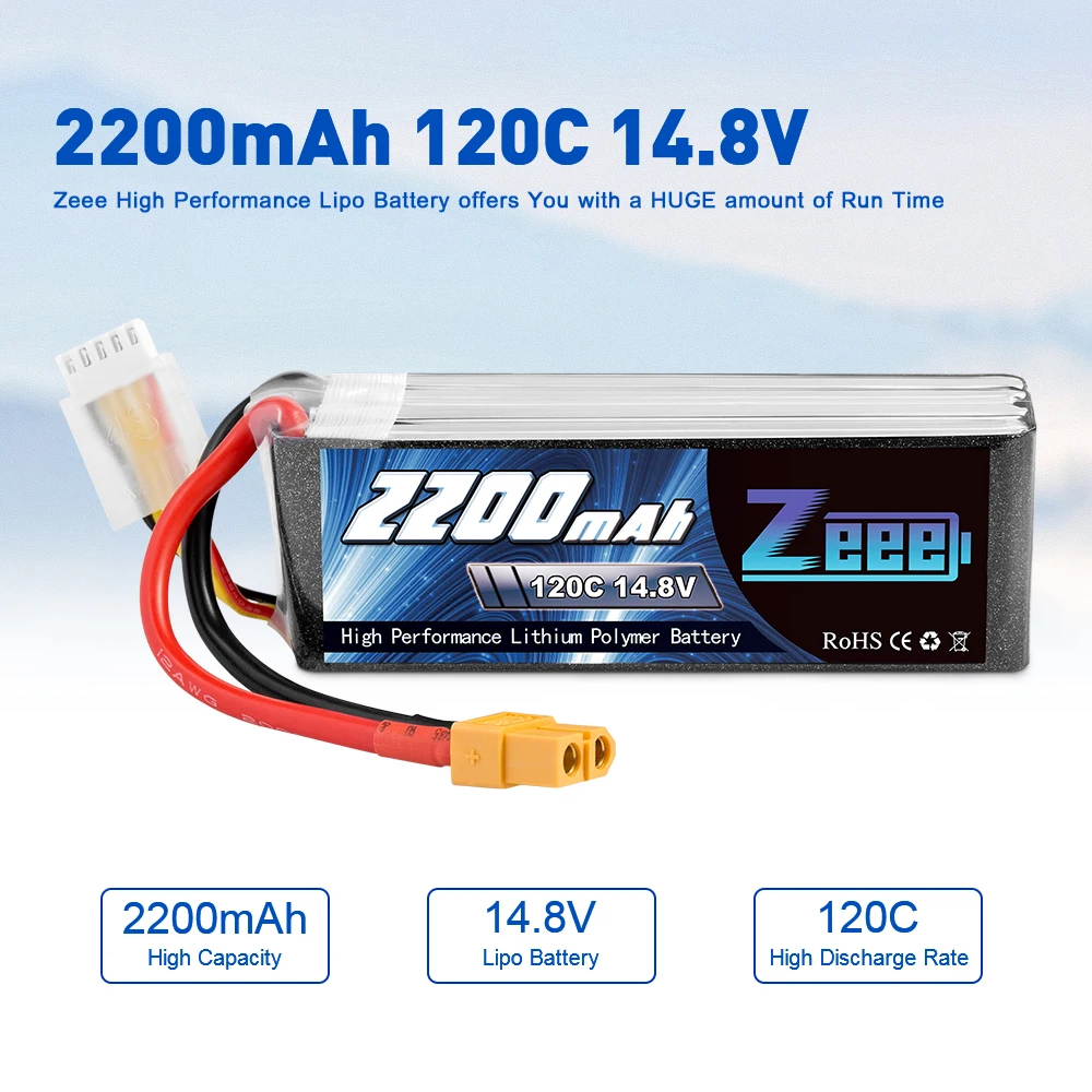 2pcs Zeee 4S 2200mAh LiPo Battery 14.8V 120C with XT60 Plug For FPV Drone RC Car Graphene Boat Helicopter Airplane RC Models