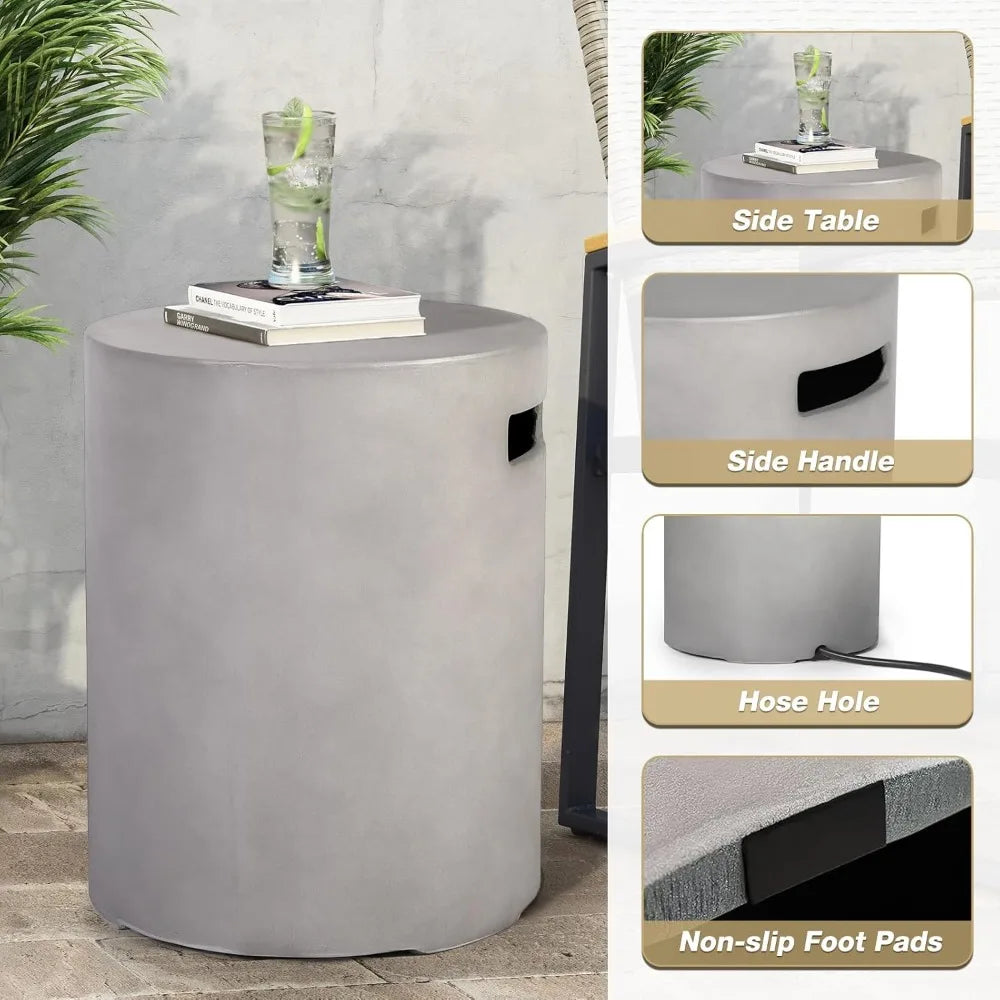 31.5 Inch Outdoor Propane Fire Pit Table w Tank Cover,50,000 BTU Round Burner, 2 Pieces Concrete Gas Fire Pit