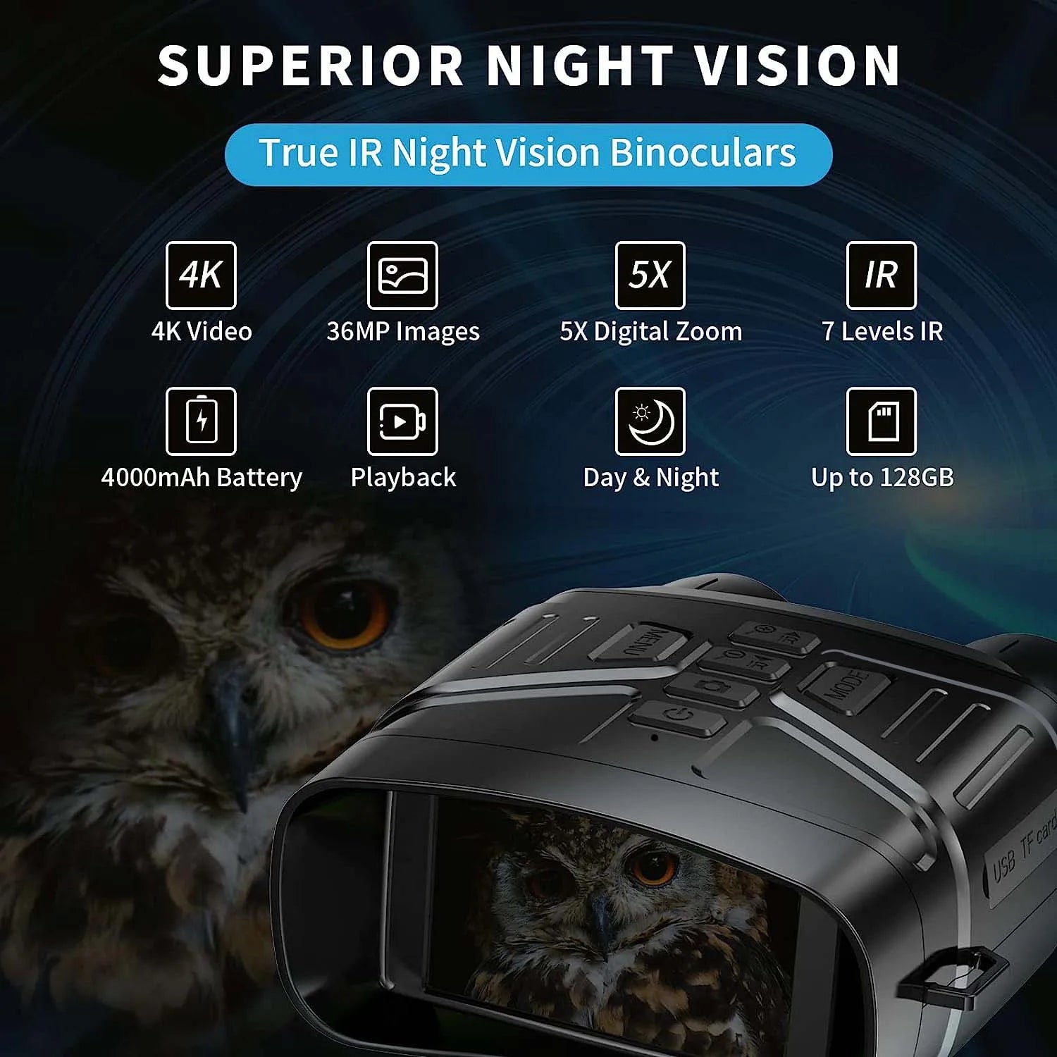 4K Night Vision Binoculars with Rechargeable Battery 32GB TF Card Night Vision Goggles for Photo And Video Saving 3'' Display