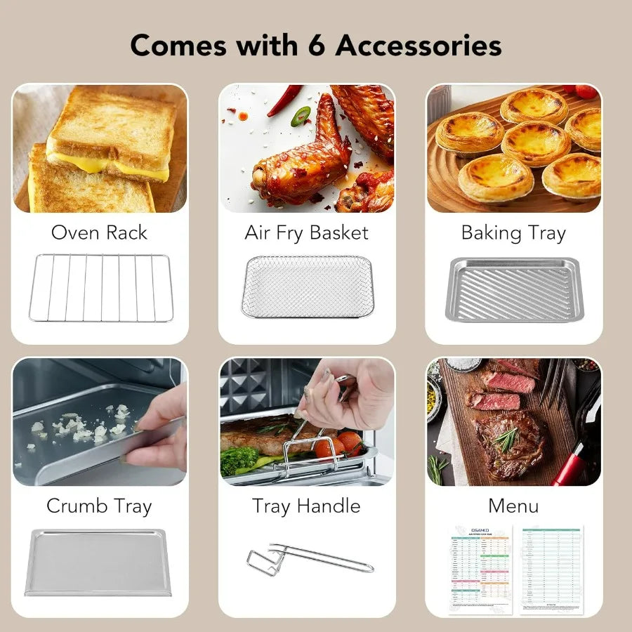 8.5QT 5-in-1 Toaster Oven Air Fryer Combo Stainless Steel Fast Preheat for Small Spaces Travel Family Healthy Cooking