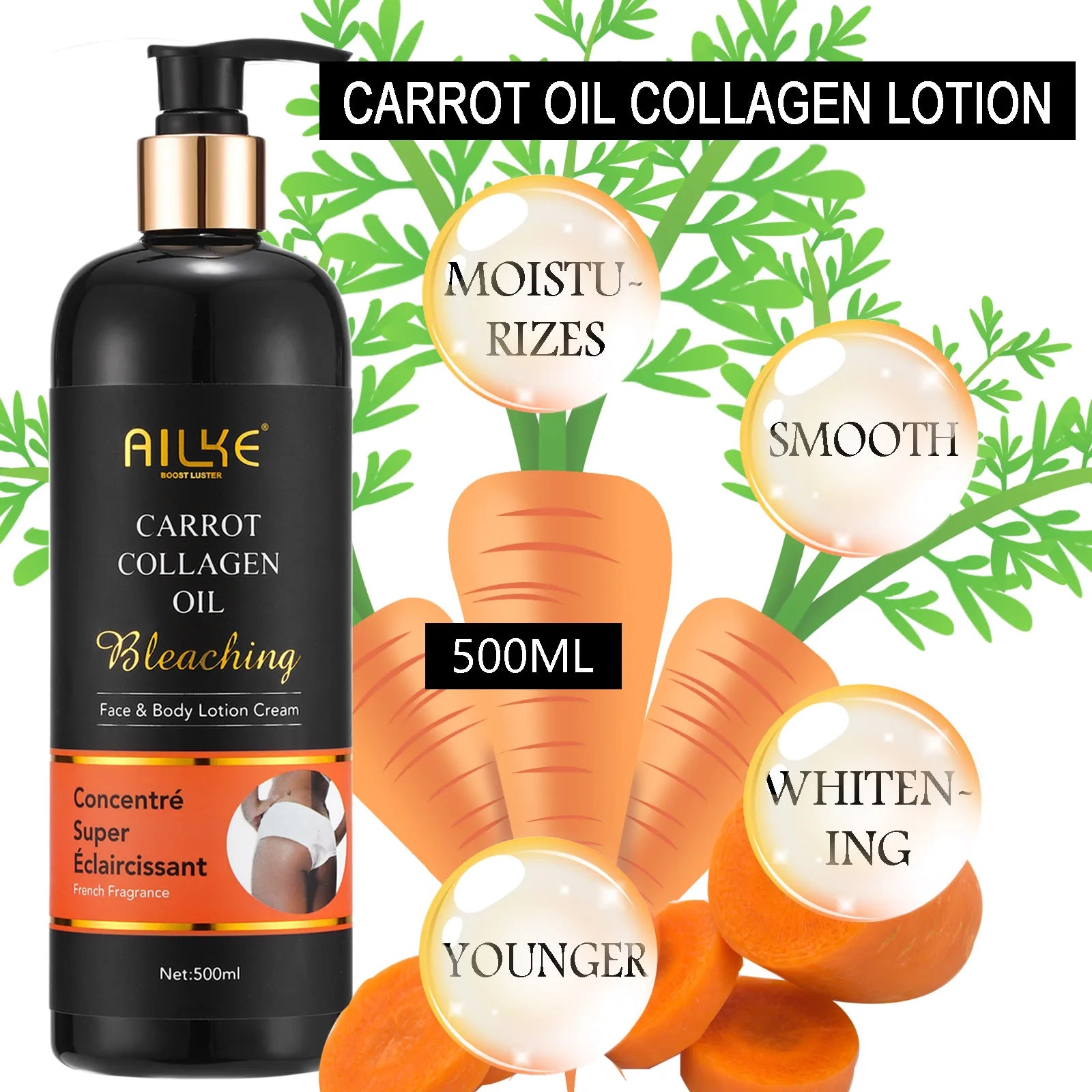 AILKE Carrot Oil & Collagen Bleaching Body Lotion, 500ML/17.6Floz
