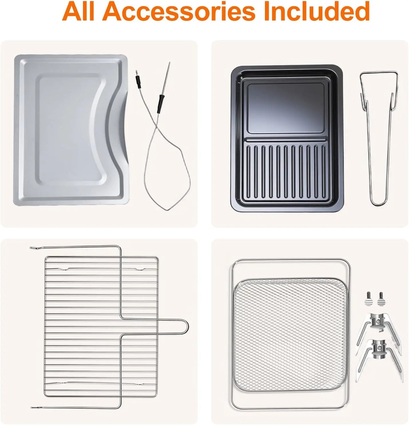 29.6 liters of ultra-large capacity + 6 high-quality accessories: The spacious interior meets the needs of family gatherings, parties, and multi-person dining. The standard accessories include a rotating grill kit, fry basket, baking pan, etc., covering grilling, frying, baking, and roasting. It is a one-stop kitchen cooking solution.