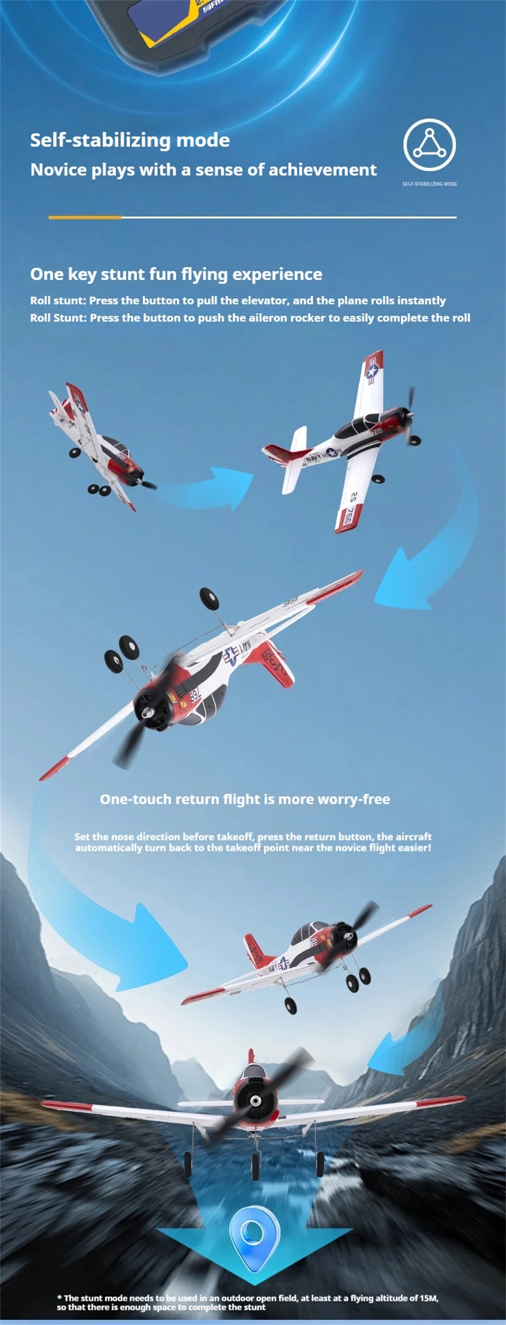 2. One-Key Stunt Activation: Easy-to-use stunt button enables exciting rolls and loops, delivering fun aerial tricks with just one click.