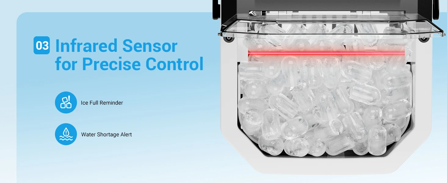 App & Alexa Control: Start your countertop ice maker remotely via App, even when away from home. Pairing the ice maker machine with Alexa enables a variety of intelligent commands, offering a more convenient lifestyle, made possible by us.