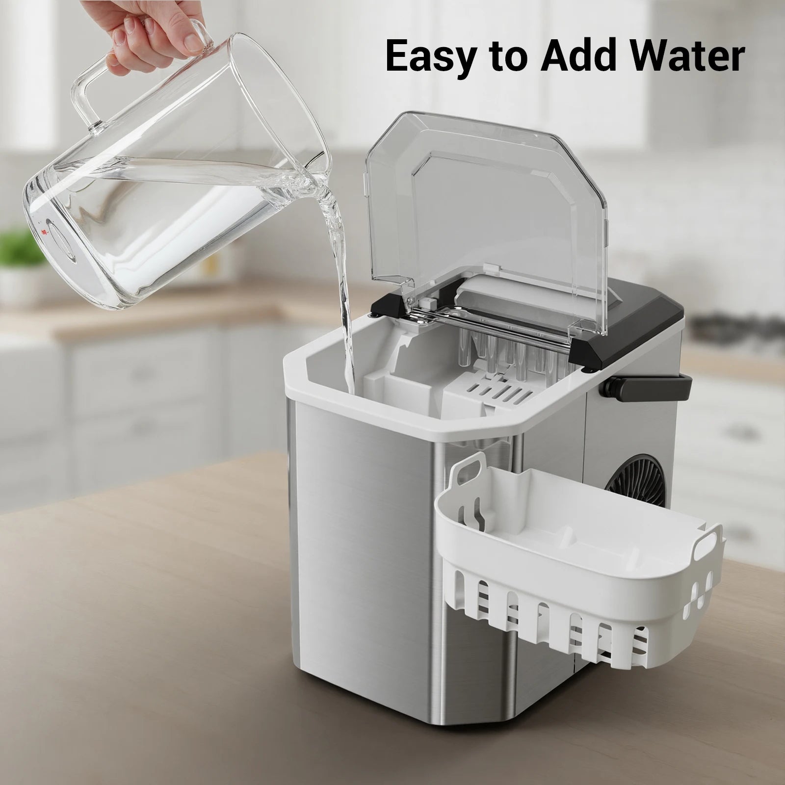 10-Minute Self-Cleaning: Easily clean this countertop ice maker via control panel buttonl. Circulates water to clean every corner inside the bullet ice maker, contributing to a healthy lifestyle. Note: To prolong service life, please ensure the inside is dry when storing.