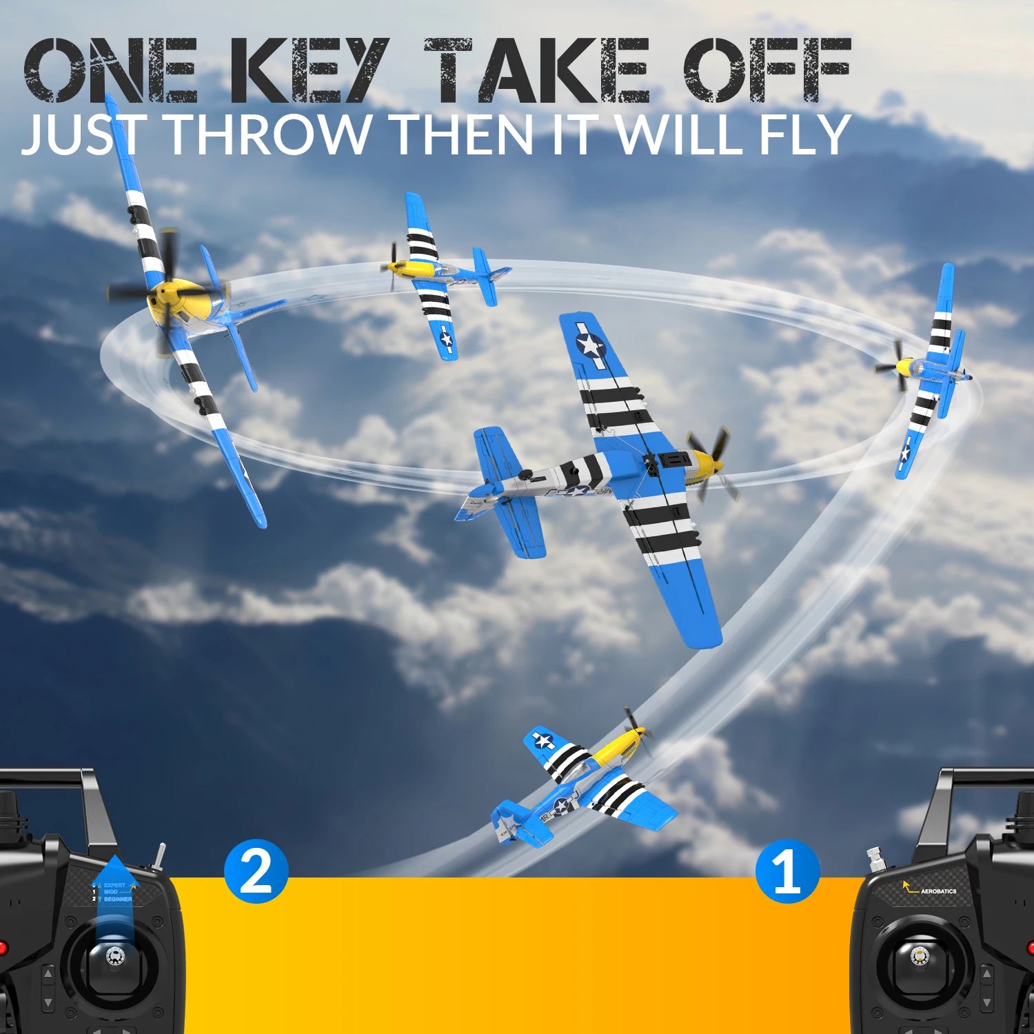 🛫The VolantexRC P51 Mustang with gyro is one of the best RC airplane for beginner kids and adult. It come with Aileron, great sport performance, with one key aerobatic, 6-axis gyro, one key return, durable EPP material, propeller saver.